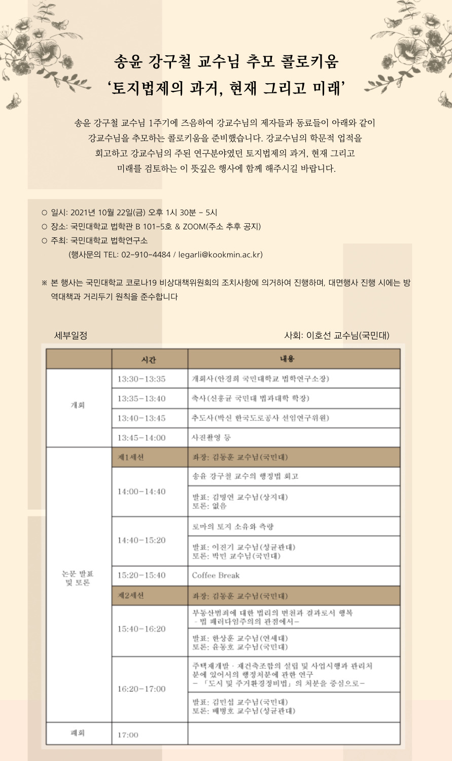 [국민대학교 법학연구소] 송윤 강구철 교수님 추모 콜로키움 <토지법제의 과거, 현재 그리고 미래> 안내