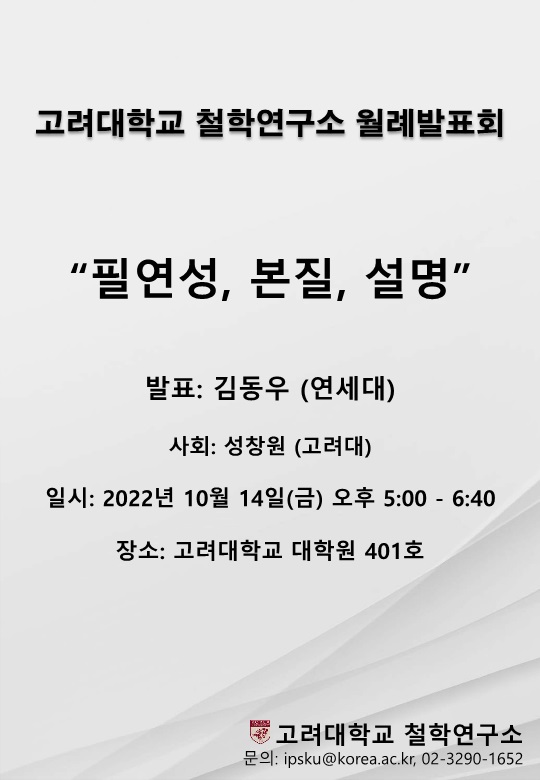 [고려대 철학연구소] 10월 월례발표회