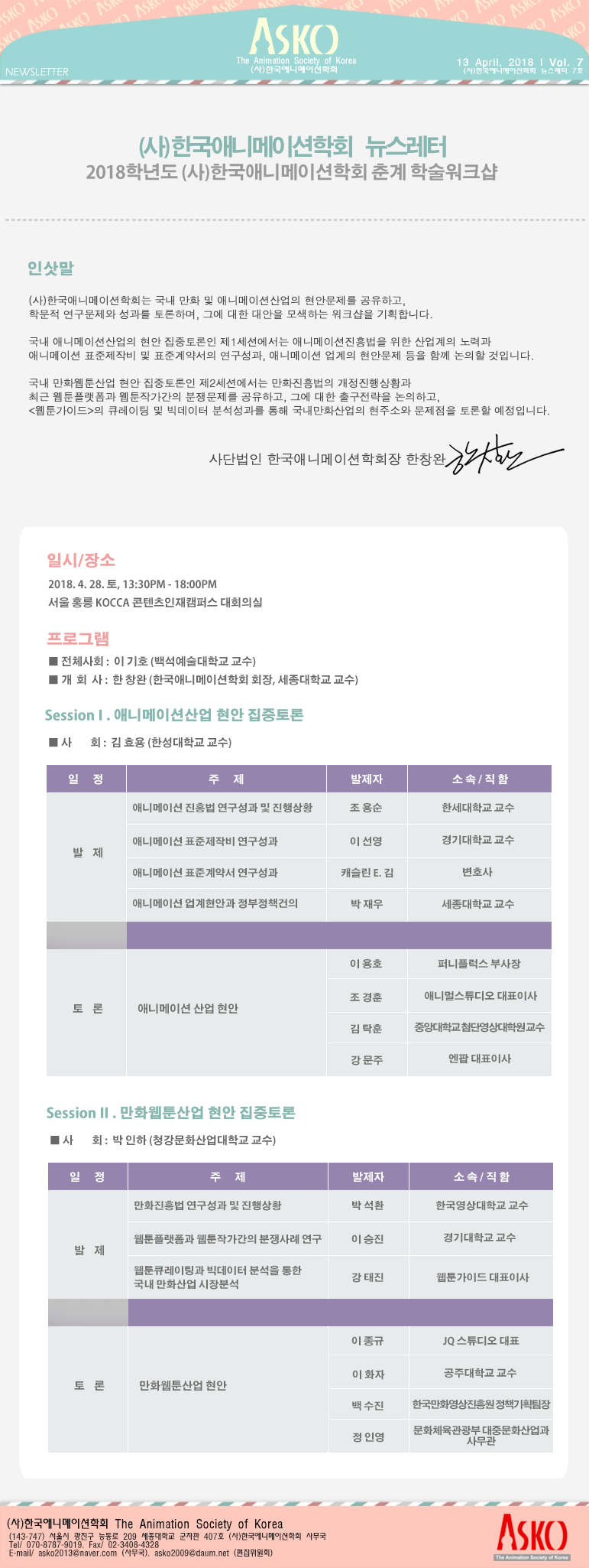 2018 한국애니메이션학회 춘계 워크샵 안내
