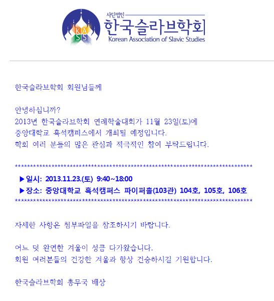 제6회 동아시아슬라브학회 국제학술대회 안내