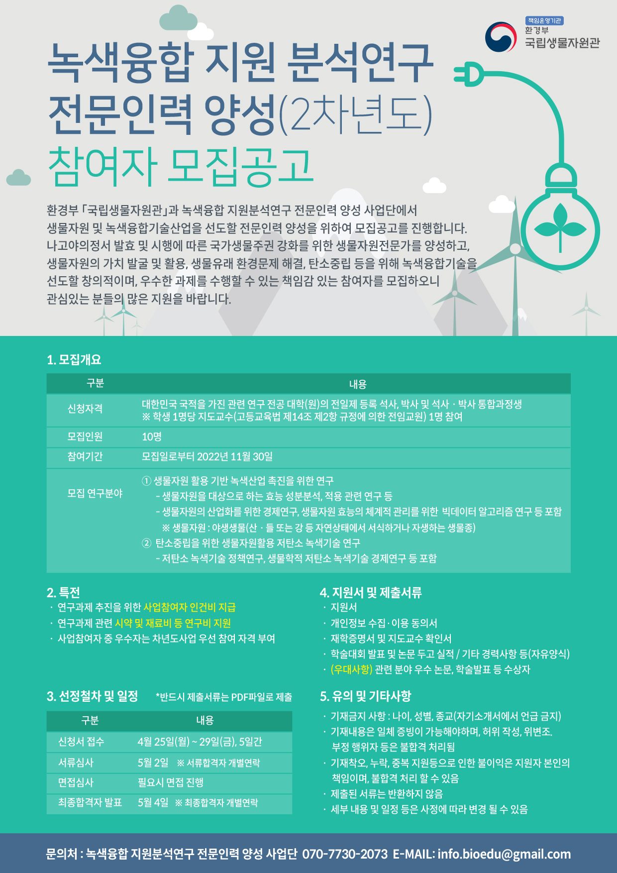 [안내] 환경부 국립생물자원관 녹색융합 지원분석연구 전문인력양성 참여자 모집